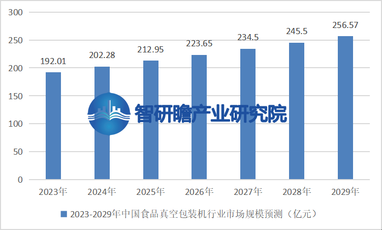 预测,2029年中国食品真空包装机行业市场规模256.57元。2023-2029年中国食品真空包装机行业市场规模预测如下:
