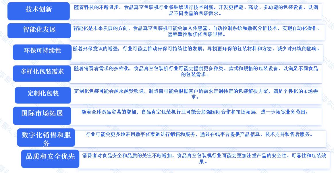 随着消费者需求的多样化,食品真空包装机行业可能会提供更多种类、款式和规格的包装设备,以满足不同食品的包装需求。
