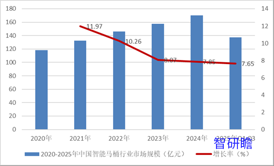 回顾过去,中国智能马桶市场已经完成了初步的市场教育和消费者认知铺垫。早些年,中国游客赴日“背马桶盖”的新闻一度成为社会热点,这从侧面反映了国内市场存在的巨大需求缺口。随着本土品牌的崛起和产业链的成熟,智能马桶的价格逐渐亲民,从最初主要布局在一二线城市的高端楼盘和酒店,开始向更广阔的三四线城市及普通家庭渗透。电商平台的蓬勃发展更是极大地降低了消费者的体验门槛,销量连年攀升,市场已驶入增长的快车道。据智研瞻产业研究院统计显示,2020年中国智能马桶行业市场规模118.13亿元,2024年中国智能马桶行业市场规模169.99亿元,同比增长7.85%。2020-2025年中国智能马桶行业市场规模如下: